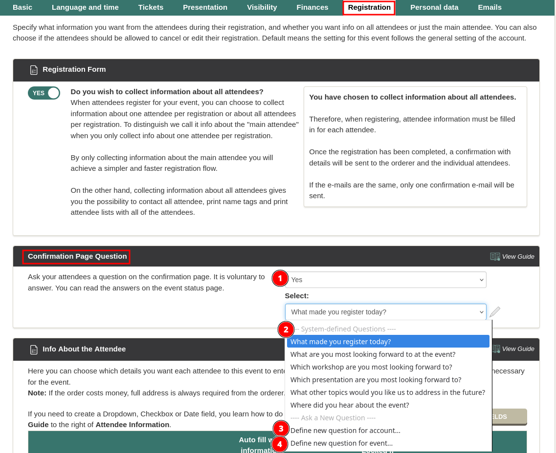 Did you know that you can ask a question on the confirmation page to the person making the registration?