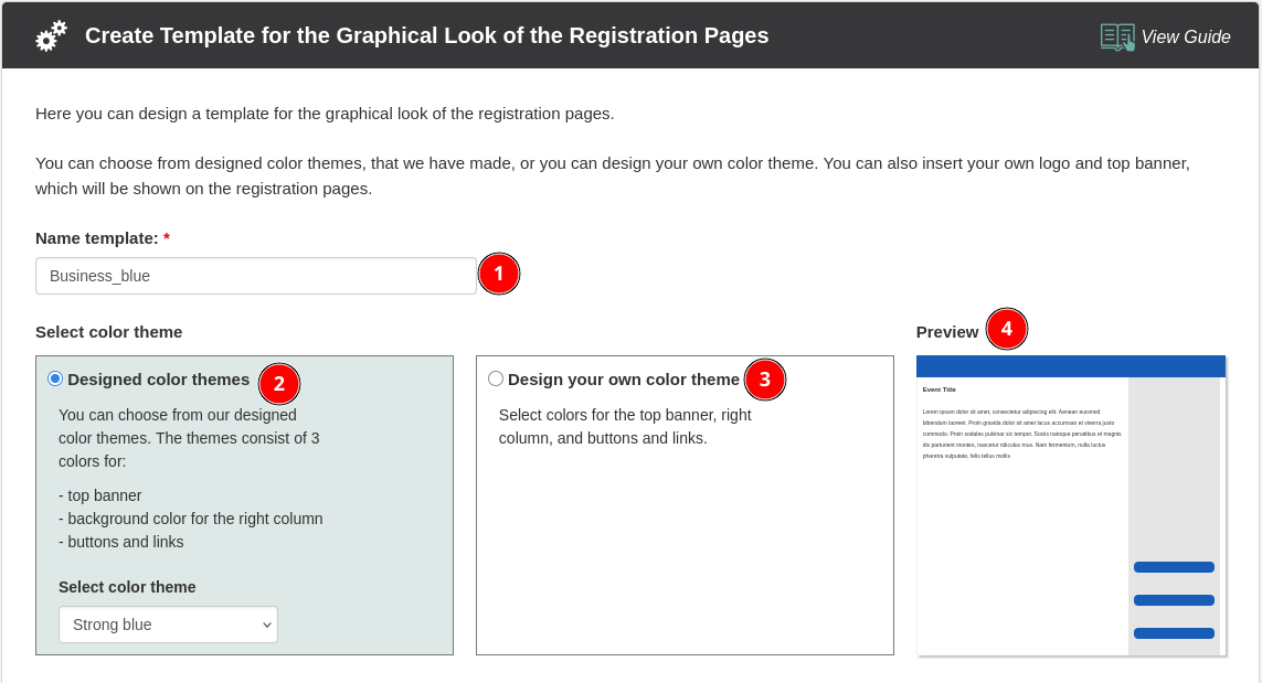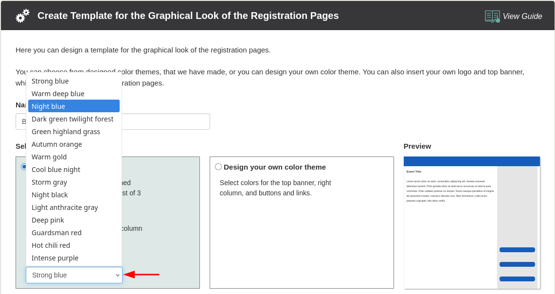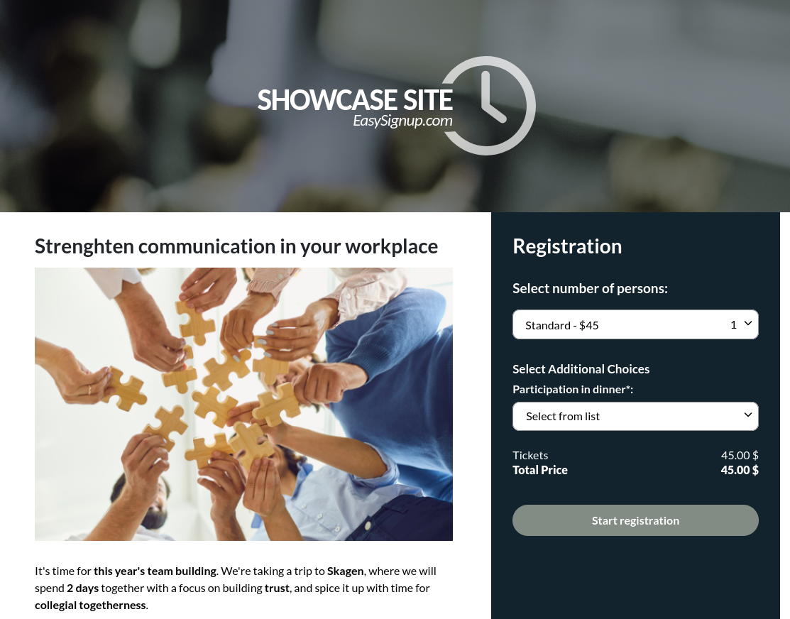 Here you can see how to work with the graphical appearance in EasySignup. We show you how to choose a color theme, as well as how you can customize elements such as the logo, banner, and colors of buttons and links on the various registration pages and event lists that your attendees see.