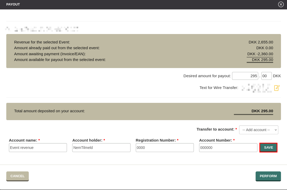 It's easy and fast to transfer event revenue from EasySignup to a bank account of your choice once the event is over. Event revenue is released 72 hours after the event is over by default. This waiting period is to protect attendees from potential fraud.