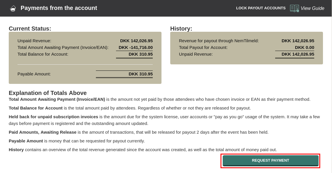 Note: If you need to transfer event revenue before the event is over, you can make an agreement about this. Attendee fees will then be released 72 hours after we have registered them - not 72 hours after the event is over.