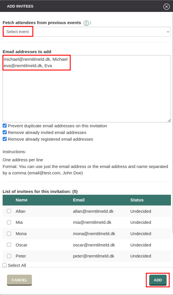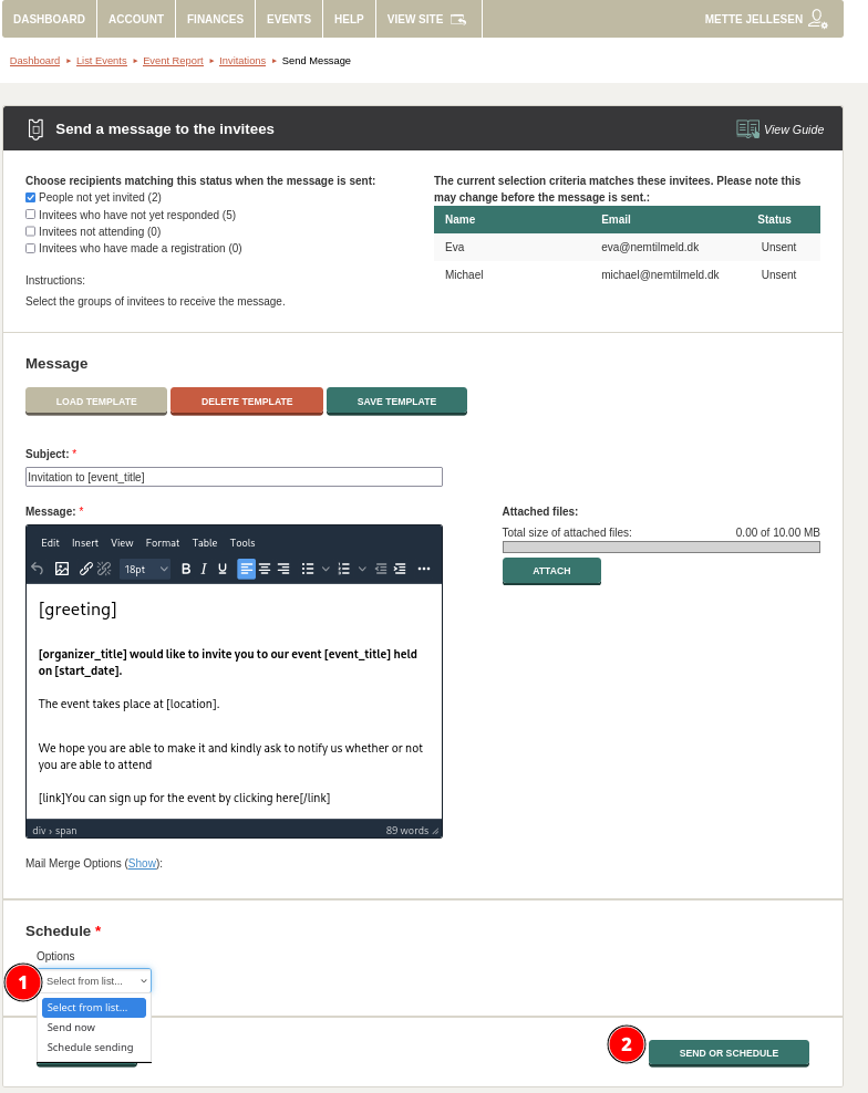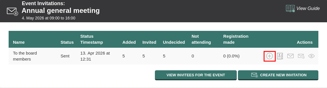 Go to the list of invitations by clicking on the following icon in the event overview: