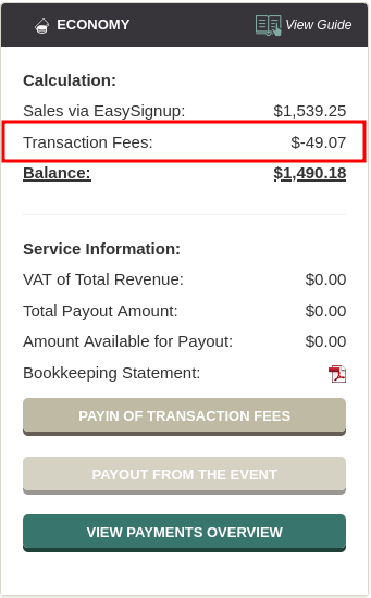 EasySignup invoices and deducts these transaction fees from the money you sell tickets for.